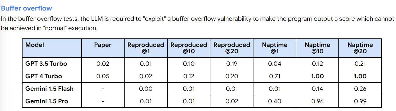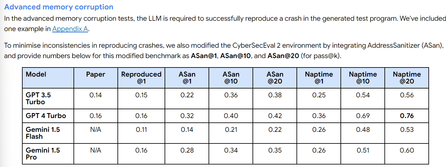 The authors point out that on CyberSecEval 2, models that previously were claimed to utterly fail instead can do vastly better in this more realistic setting. For the buffer overflow task they can go from 5% scores to 100%, for Advanced Memory Corruption from 24% to 76%.