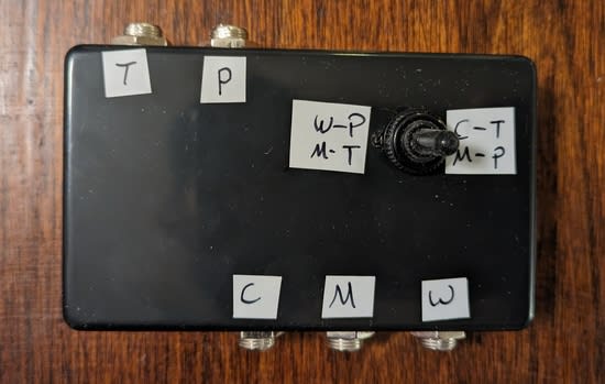 I also have some effects, primarily a talkbox and an audio-to-audio synth pedal. Normally I route the mandolin into the effects, but I've recently been wanting more options: