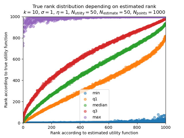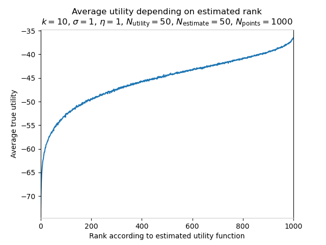 - Given some distributions from which utility functions and estimates are drawn, is average true value an increasing function of estimated rank?