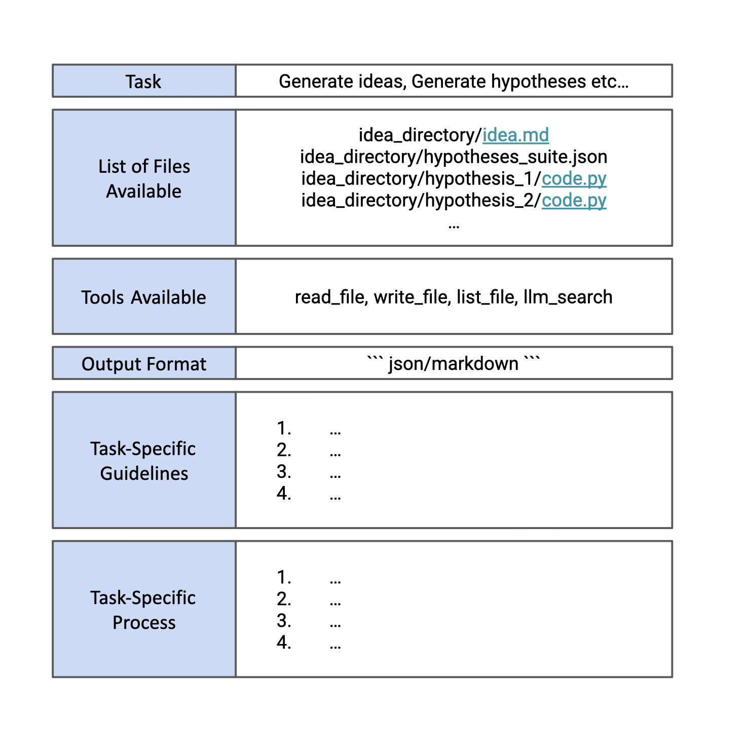 Each agent received the repository state as part of its prompt context, along with tools for reading and writing files. This kept context engineering minimal. Agents decided which files to consult, just as a researcher would navigate their own project folder.