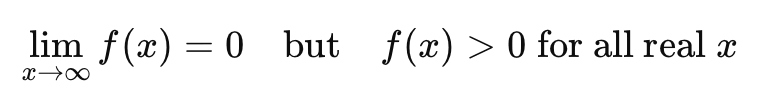 Yes, our function is here. As you can see, we are talking about a curve that goes towards zero but will never reach zero. What does this mean, let's take a derivative and see.