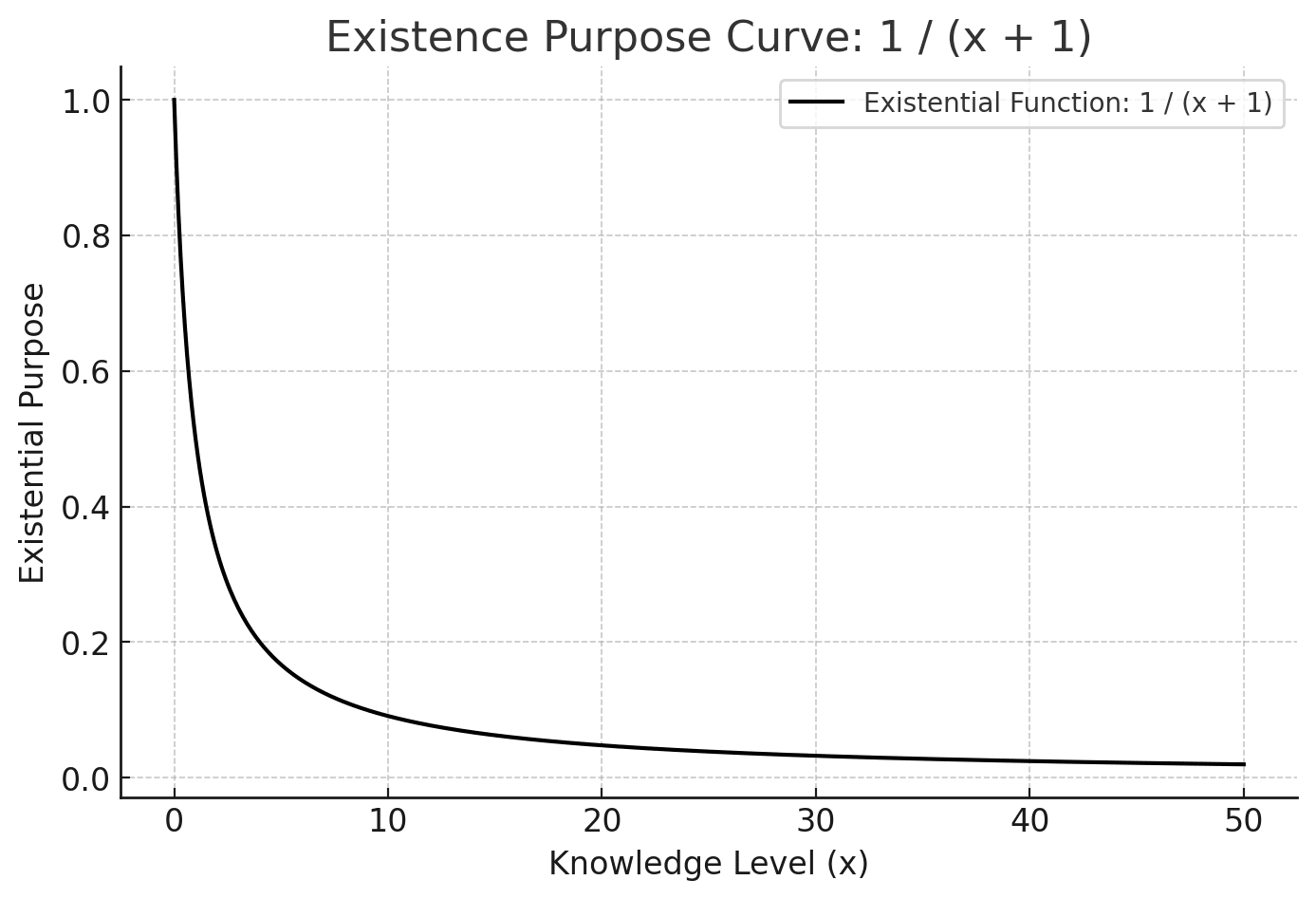 Consider a human life. At birth, x=0 and the gap is complete: f(0)=1. The baby knows nothing and understands nothing. As life progresses – through experience, culture, education – x increases. The person becomes “wiser.”