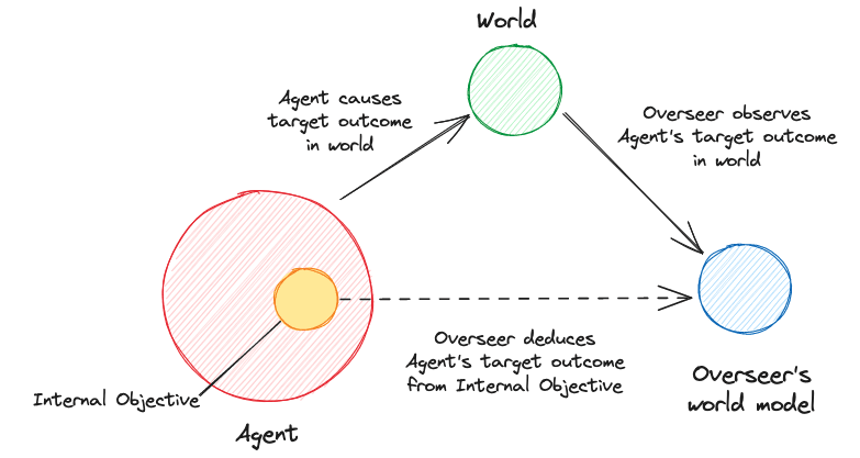 Probes could be used to map from the Agent's internals to the Target Outcome (in the Overseer's world model) if we assume the agent pursues aligned objectives on the probe's training dataset.
