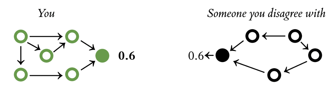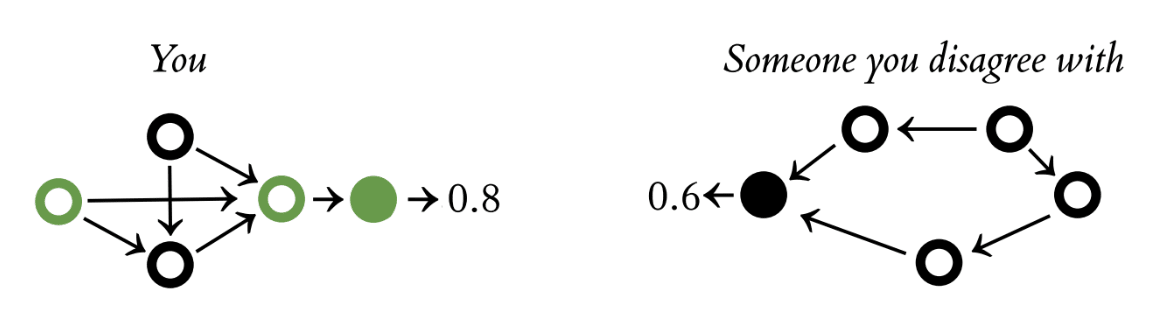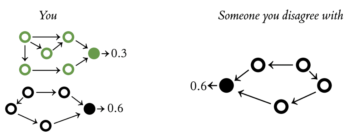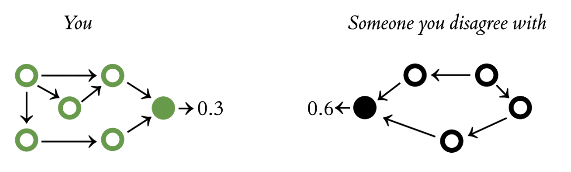 Step 1: You each have a different model that predicts a different probability for a certain event.