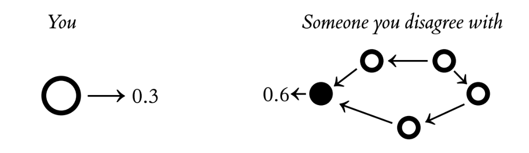 Step 3: You do some cognitive work to integrate the evidences and ontologies of you and them, and this implies a new probability.