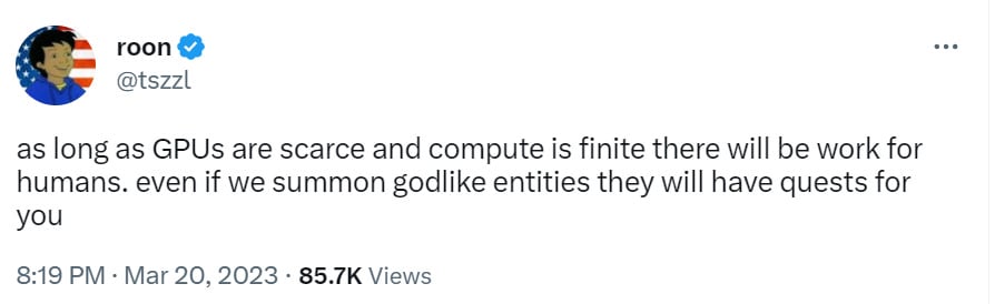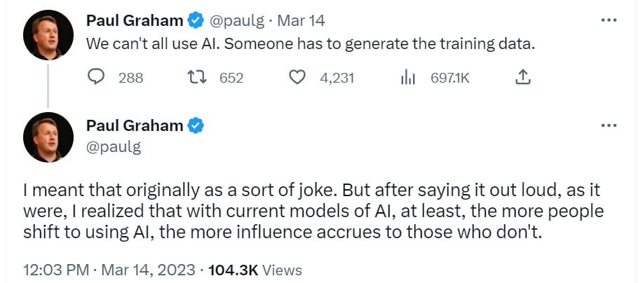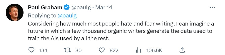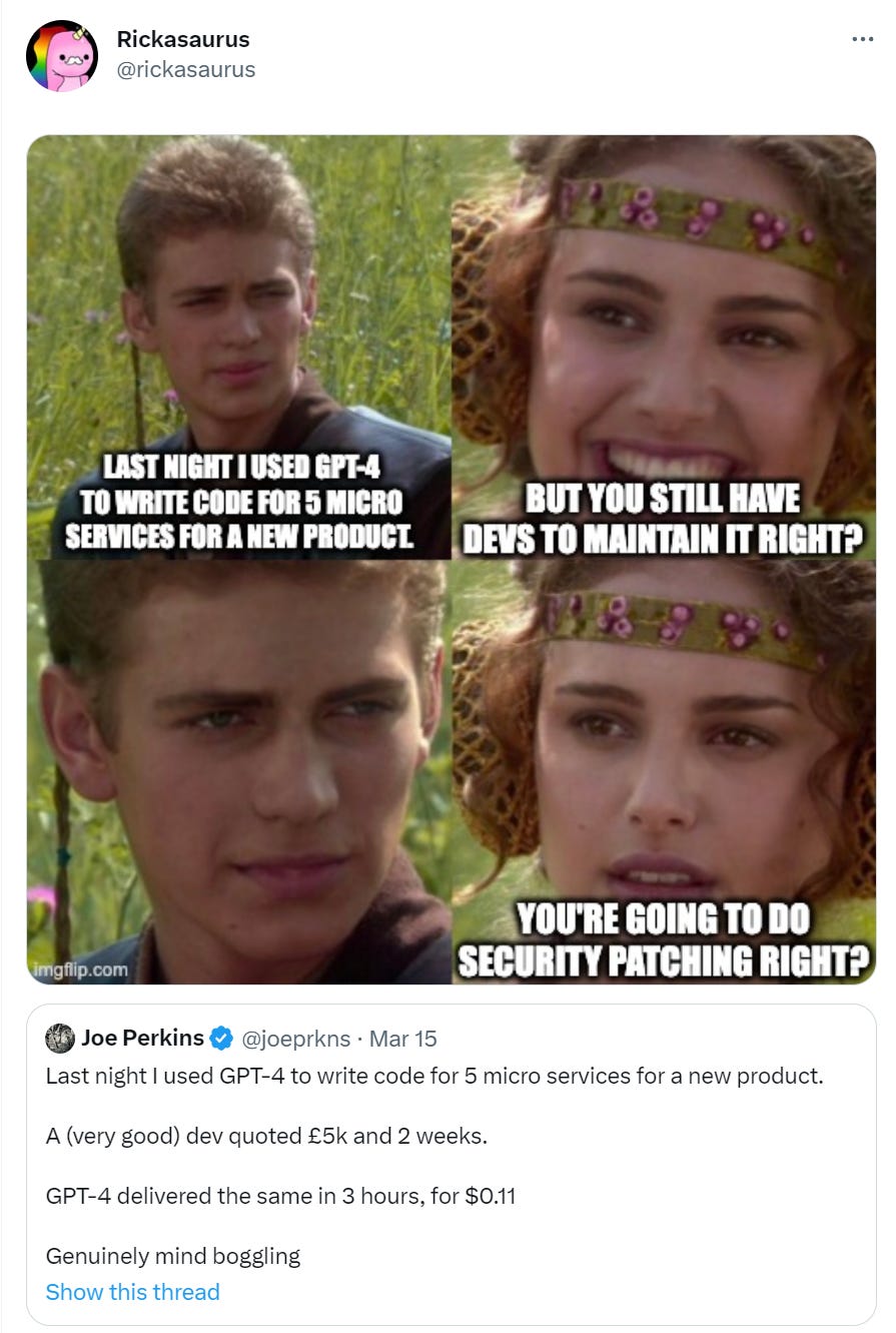 Sections 9-11 cover the other big announcements, that Microsoft and Google are integrating generative AI deep into their office product offerings, including docs/Word, sheets/Excel, GMail/outlook, presentations and video calls. This is a big deal that I don’t think is getting the attention it deserves, even if it was in some sense fully predictable and inevitable. I’d encourage checking out at least #9.