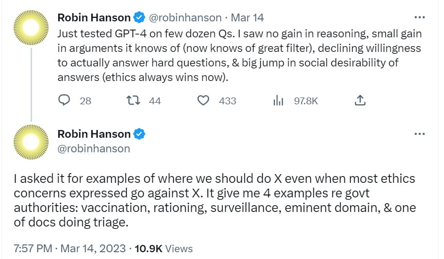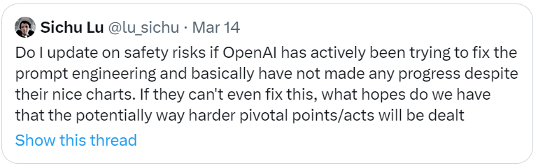 This week’s section divisions are a little different, due to the GPT-4 announcement. Long posts are long, so no shame in skipping around if you don’t want to invest in reading the whole thing.