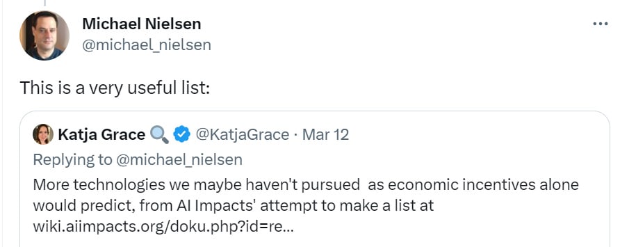 Is it possible to simply not build something when the economic incentive is there to do so? Historically the answer is essentially yes. We have the (lack of) receipts.