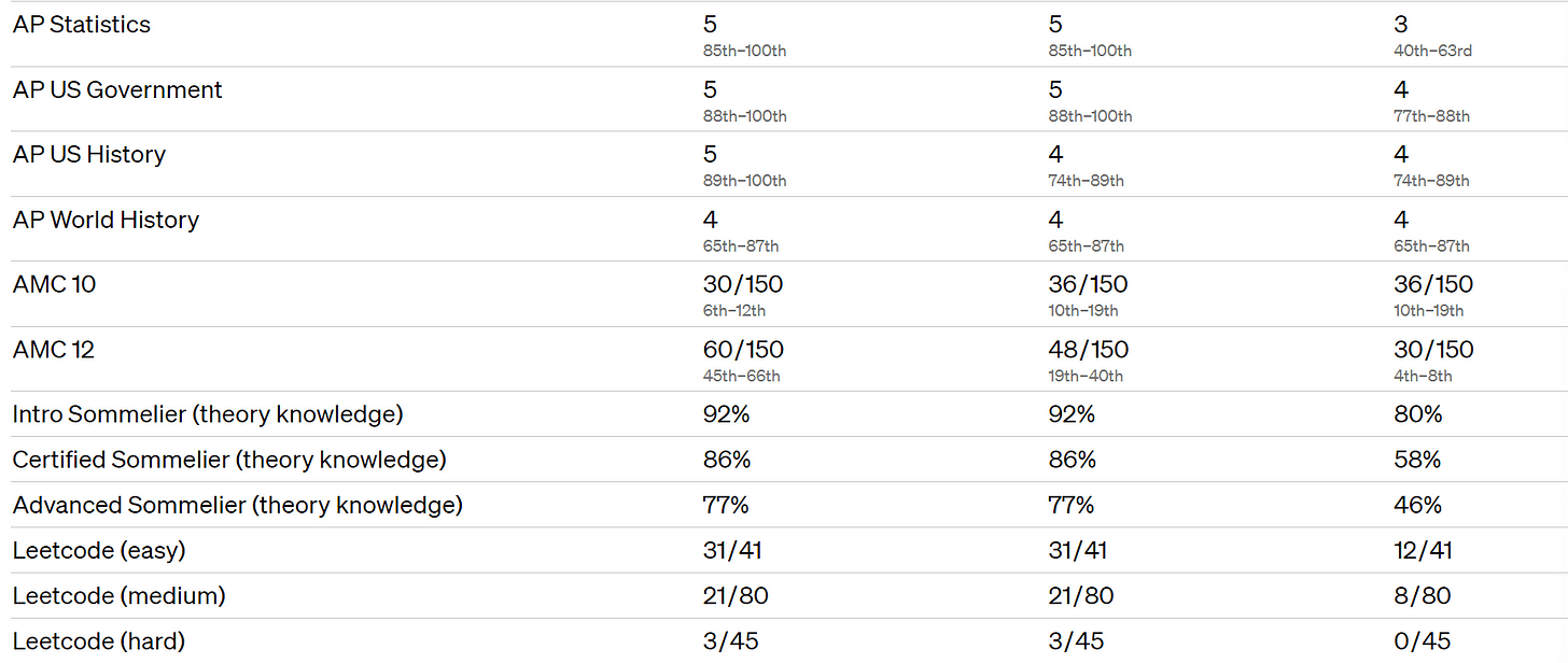 Several people noted that AP English is the place GPT-4 continues to struggle, that it was in a sense ‘harder’ than biology, statistics, economics and chemistry.