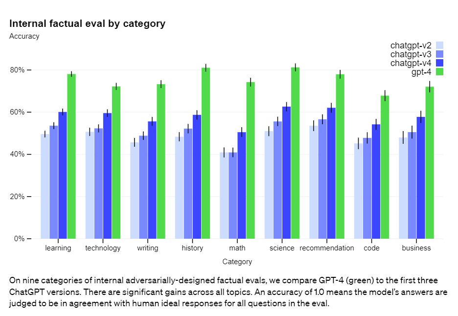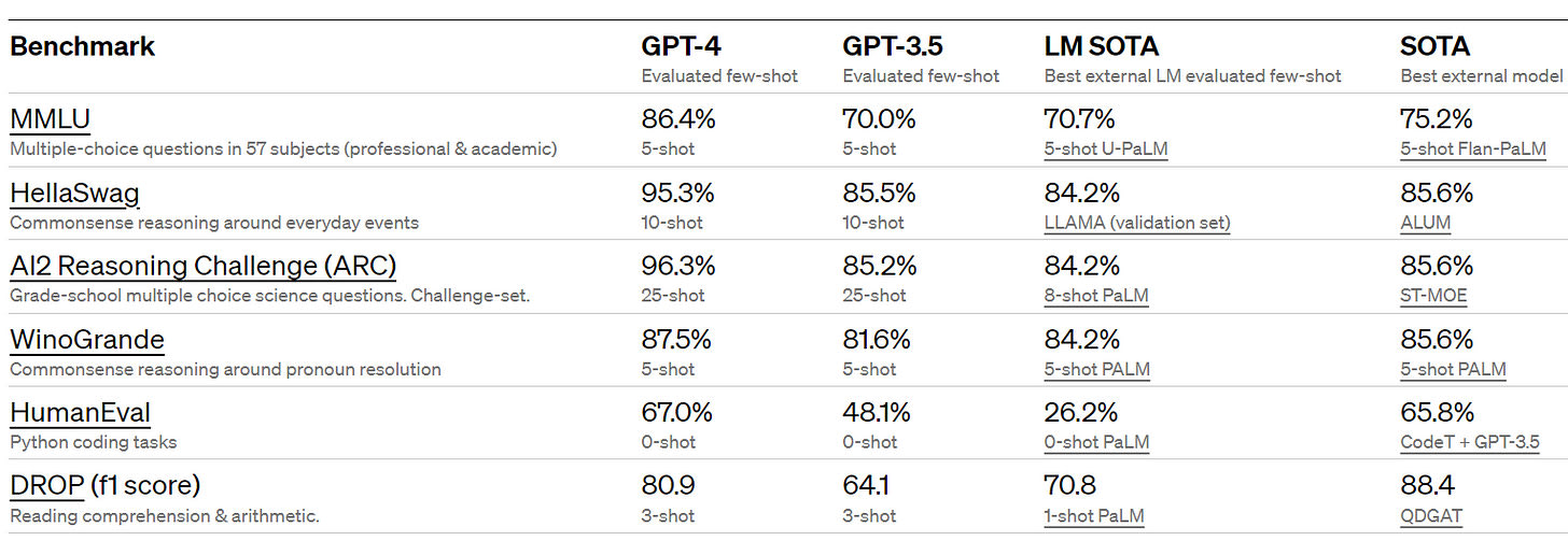 GPT-4 also did well on various benchmarks.