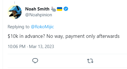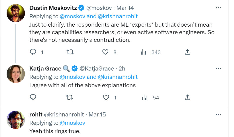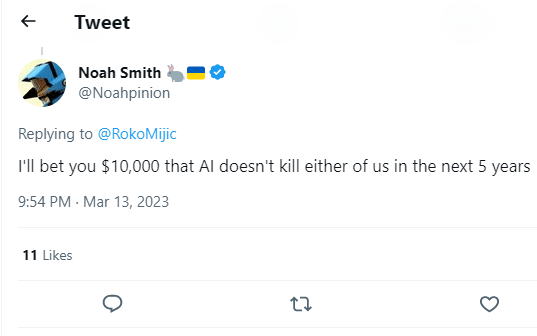 Cody asks what are the most compelling anti-doom arguments, that oppose the case in this 30 minute video. Katja Grace replies with her post, which is strong. Matthew Barnett points us to his long comment here in response to A List of Lethalities, I disagree with his points but they are definitely at least wrong. We also get pointed to a podcast with Paul Cristiano that I haven’t had time to listen to yet, but that seems likely to be great.