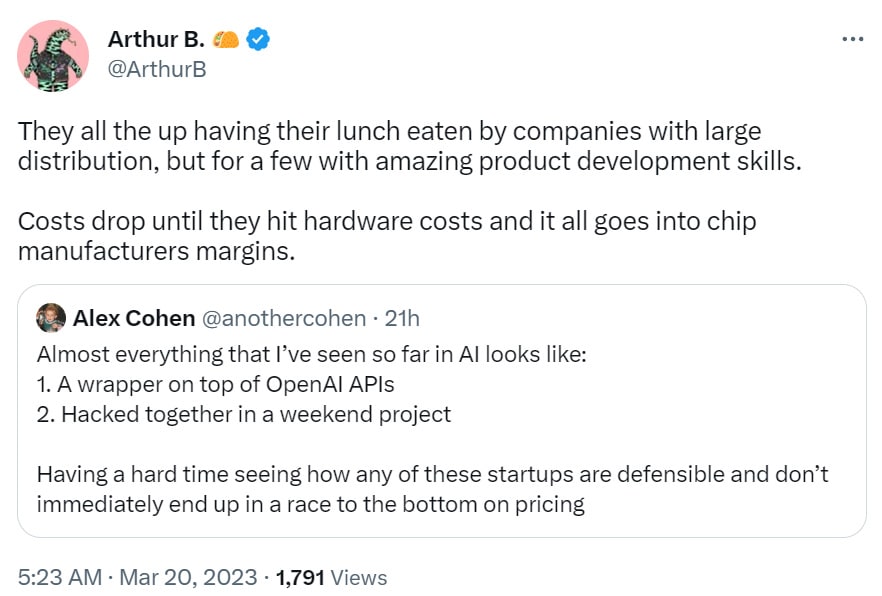 A key question is whether performance of LLMs will asymptote as it approaches the level of its data sources, able to do all the things and do all those things faster and in combination, with limitless knowledge and memory, in parallel. But not go beyond that, so it would be fine? I mean, it wouldn’t be fine, that’s plenty on its own, but never mind that. Beff Jezos expects this scenario, Arthur Breitman says no because there are ways to bootstrap further training. In general, even with all this spectacular progress, seems like there are tons of obvious and powerful ways to keep going or ramp things up that are not being pursued. One can take this as a sign that progress will never stop, or as a sign that a lot of possible paths will never be seriously pursued.