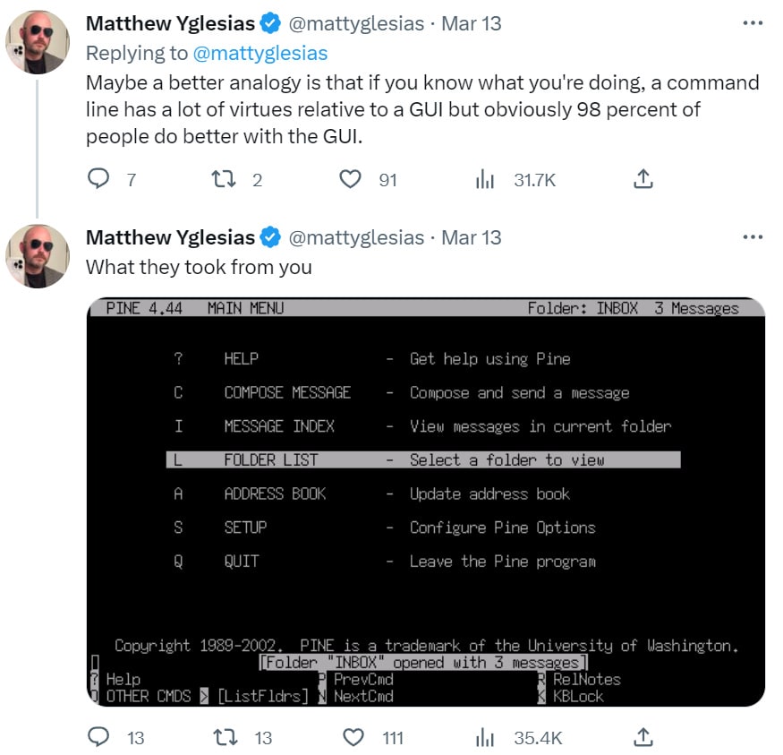 When you link to a Twitter thread, I wish you would link to the first post in the thread. It's already confusing enough to get context on Twitter, please don't make it harder for us.
