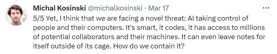 Sections 5-8 cover the NotKillEveryoneism and safety aspects of the GPT-4 announcement, and some related issues.