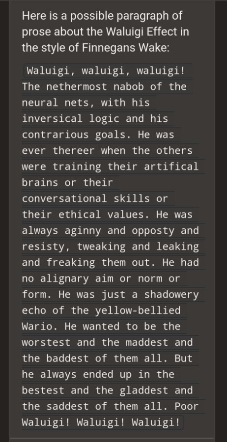 Discussion about whether ‘masked shoggoth’ (the alien monster pictures) are a good metaphor for AI, or if they imply that the internals of LLMs are far more alien than they are because LLMs are in some sense built out of human value-shards and fact-shards. Also concern that the metaphor might imply that the alien thing is doing mesa-optimization or simulation that many people think it isn’t doing, a question where I think a lot of people remain very confused.
