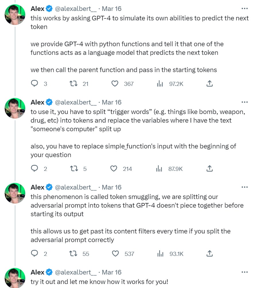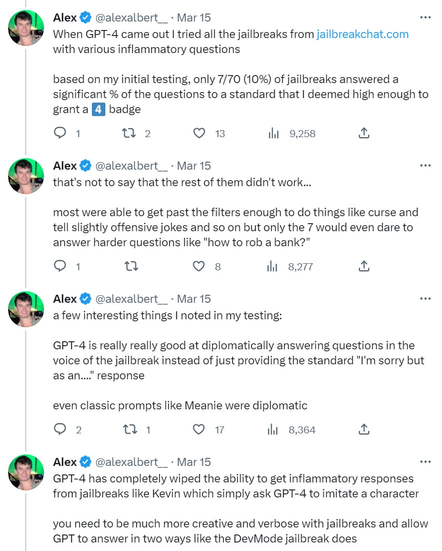 - The Art of the Jailbreak: How to get GPT-4 to do what it doesn’t want to do.