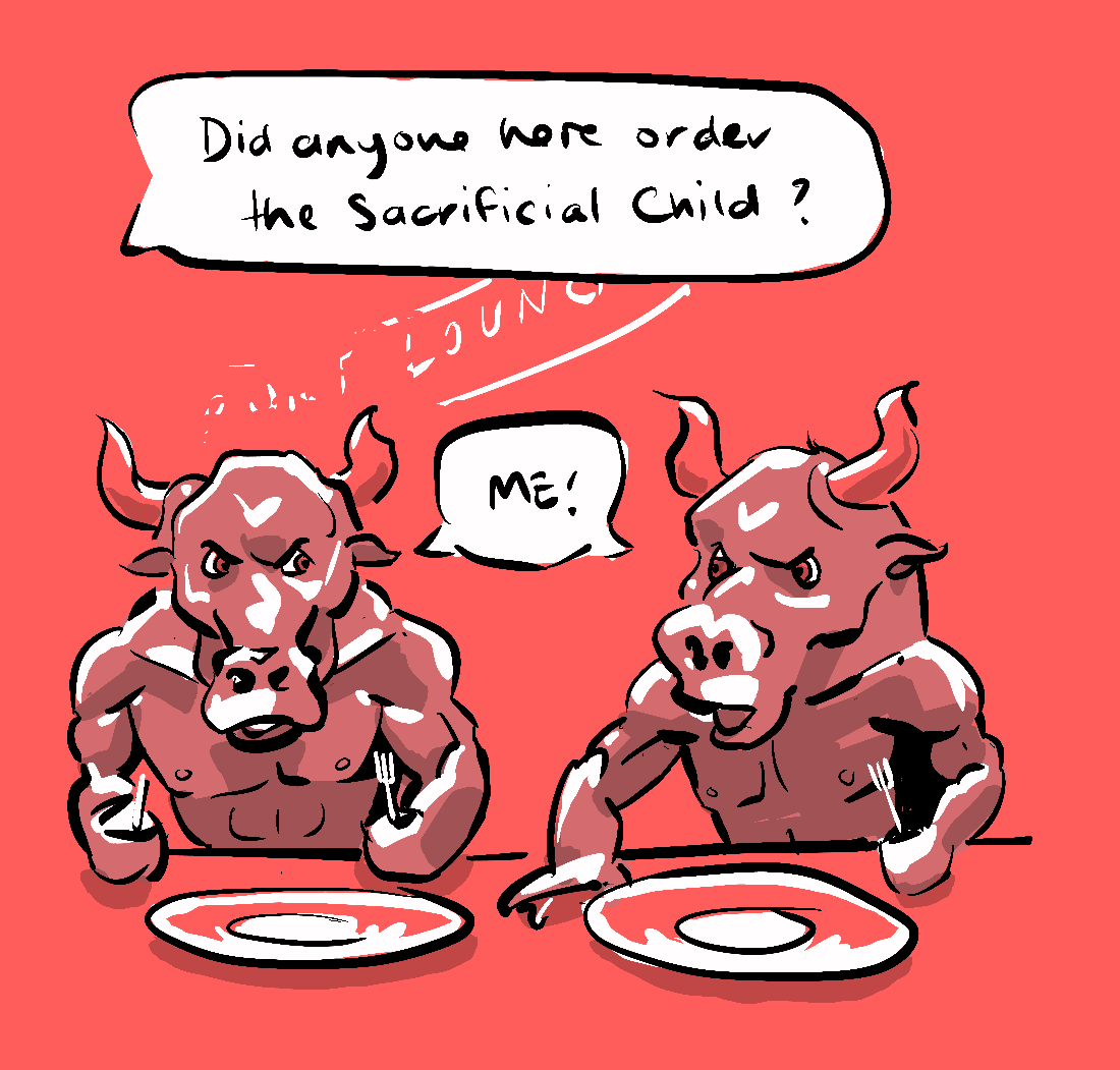 Moloch is a nasty character. He appears in John Milton’s Paradise Lost as the most bloodthirsty of all the fallen angels and is named in the Bible as a Canaanite god associated with child sacrifice. But there is some confusion over whether Moloch is a god or merely the personification of the Punic word for sacrifice which is “Mlk” or perhaps is a combination of the Hebrew words for king “Melech” combined with the word for shame “bōšet”. There are also many parallels between the bona fides of Moloch and the Ancient Greek Minotaur. Both have a bull’s head on a man’s body and the fury of both are only appeased by ritual sacrifice. So, as with many myths, the origins are hazy.
