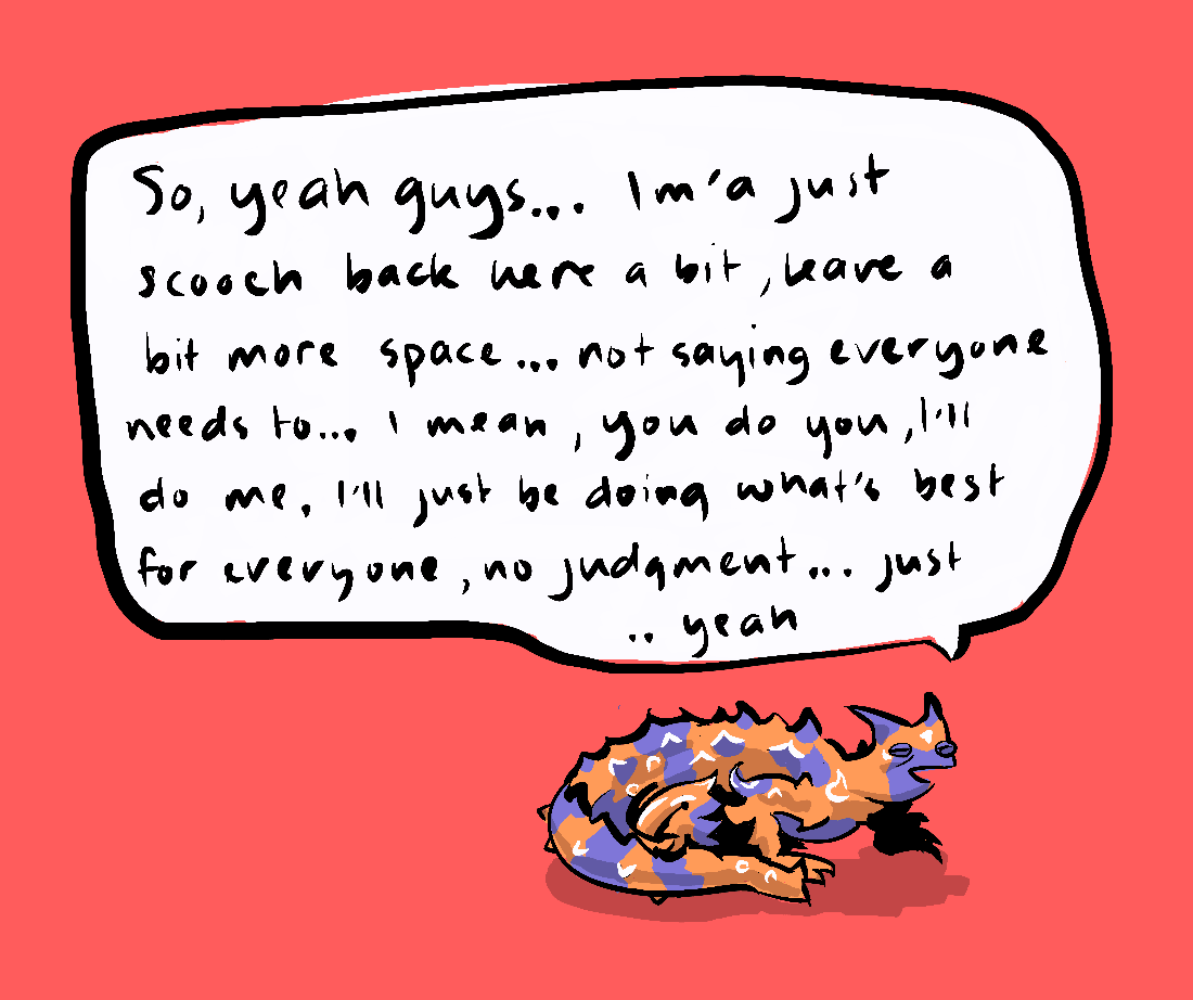 For the Thorny Devils arriving at the Moloch Inter-Dimensional Spaceport baggage claim, it takes forever to retrieve their bags, because a few of these prickly characters insist on crowding the conveyor, blocking the vision and the path of those stuck behind them.