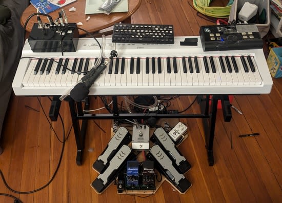 What I wasn't expecting before I started this project, though, is how nice it is when playing. My feet can easily reach the buttons, without even stopping playing kick with my left heel. This is way better than when the pedals sprawled all over the floor and didn't stay put.