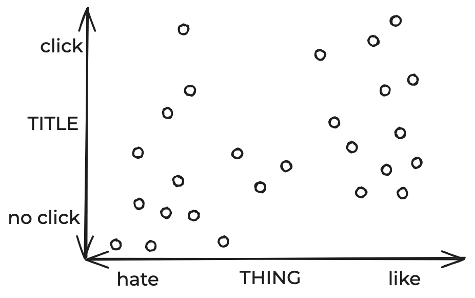 When people see the title, some are likely to click on it and some won’t. Abstractly speaking, the title adds a second dimension to the above figure: