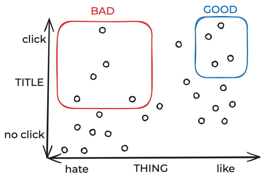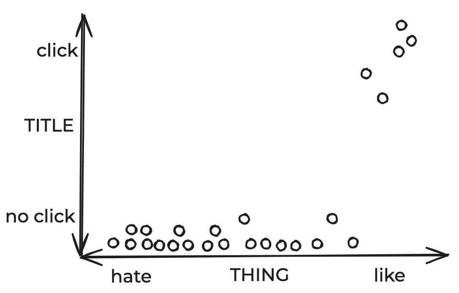 Other people will hate your thing. It’s fine, some people hate everything. But if they click on your thing, they’ll be annoyed and tell everyone you are dumb and bad. You don’t want that. So you don’t want people in the hate + click region.