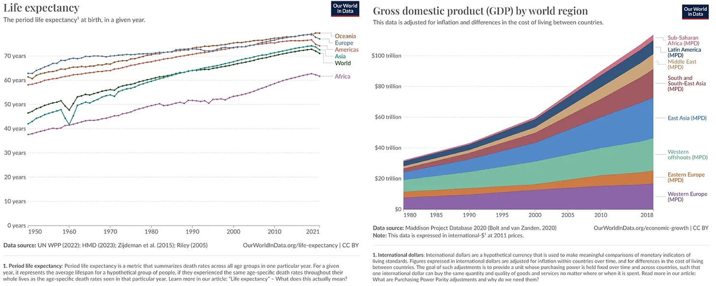 The easiest way to make this case is with worldwide trends. Over the last 40 years (not to mention the last 200), global rates of extreme poverty, child mortality, maternal mortality, and child labor (and I could go on) have all fallen: