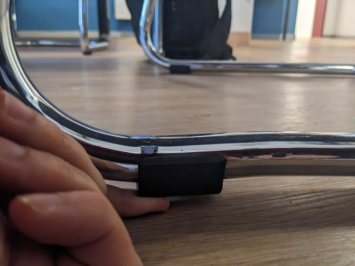 I thought once we have a table where one of the legs is shorter and the surface is flat, it’s obvious that we cannot make the table stable. In my mind, most wobbly chairs I encountered in the past were broken like that (for example when one of their furniture glides gets lost as with the chair below).