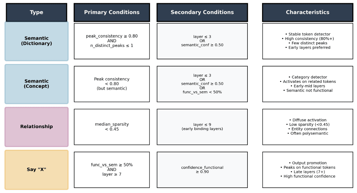 | Semantic | 19 | 48.7% | 0-22 | peak_consistency ≥ 0.80, n_distinct_peaks ≤ 1, layer ≤ 3 OR semantic_confidence ≥ 0.50 |