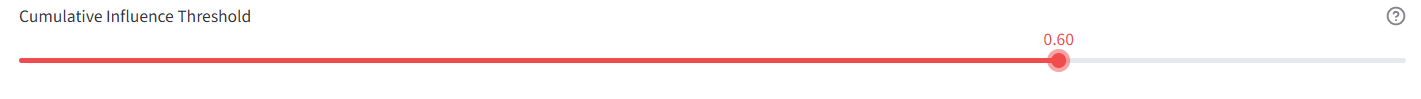 The classic Cumulative Influence Threshold used in Circuit Tracing paper is used here to choose the subset of nodes to interpretate. The streamlit interface offers convenient visual feedback of influence of single nodes and numeric indicators to choose a convenient threshold.