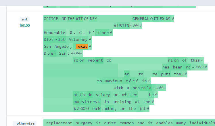 | Texas | Texas | Texas (18.45), is (5.99), all others (0.0) | ✓ |