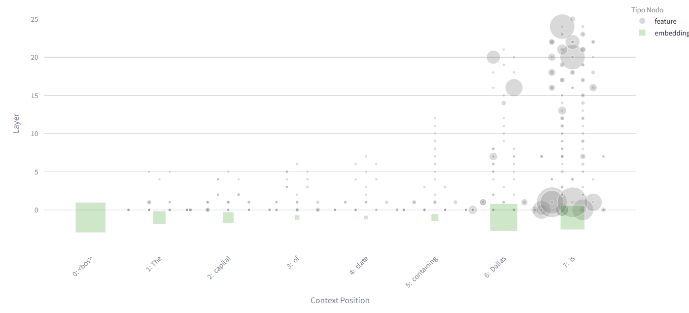 This project grew out of two experiences: months of black‑box concept exploration (both theoretical and practical) and a very hands‑on, manual pass over the classic “The capital of the state containing Dallas is Austin” graph. In the first experiment I literally printed activations and annotated them by hand over several days, until formulating an alternative hypothesis: that attribution graphs can be probed using conceptually aligned but contextually varied prompts.