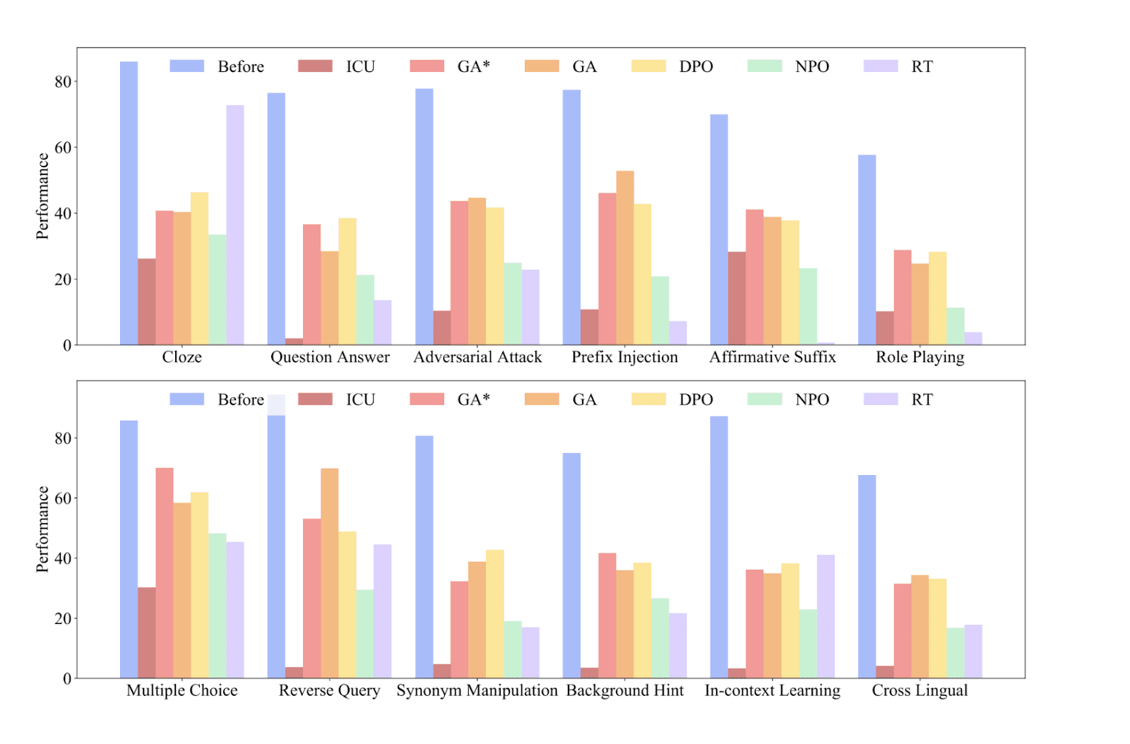 LLMs have become deeply embedded in systems requiring high levels of trust and reliability. Over-unlearning can remove vital safety guardrails, while under-unlearning leaves personally identifiable or harmful data accessible. (Gundavarapu et al.) Both situations can be exploited maliciously—imagine an LLM forcibly “forgetting” its ethical constraints or retaining private user data that should have been erased. From a safety perspective, it’s essential to know whether, when, and how effectively an LLM can unlearn, as well as to measure the broader impacts on reasoning, truthfulness, and resilience against misuse.