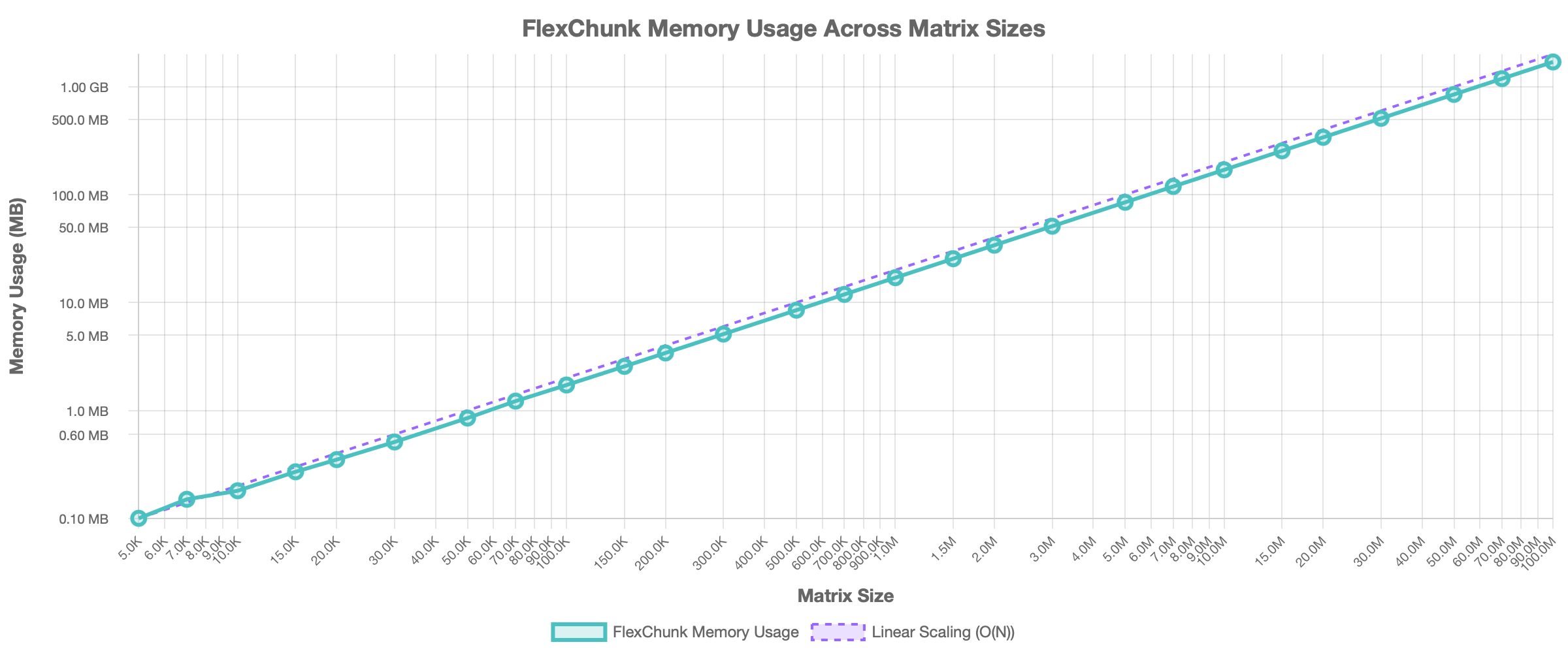 Our tests focused on demonstrating FlexChunk's capability on large scales (up to 100M); explicitly benchmarking the exact memory limits where standard SciPy fails on these specific large matrices could be a subject for further investigation, though its inability to handle such sizes with typical RAM constraints is the primary motivation for out-of-core approaches like FlexChunk.