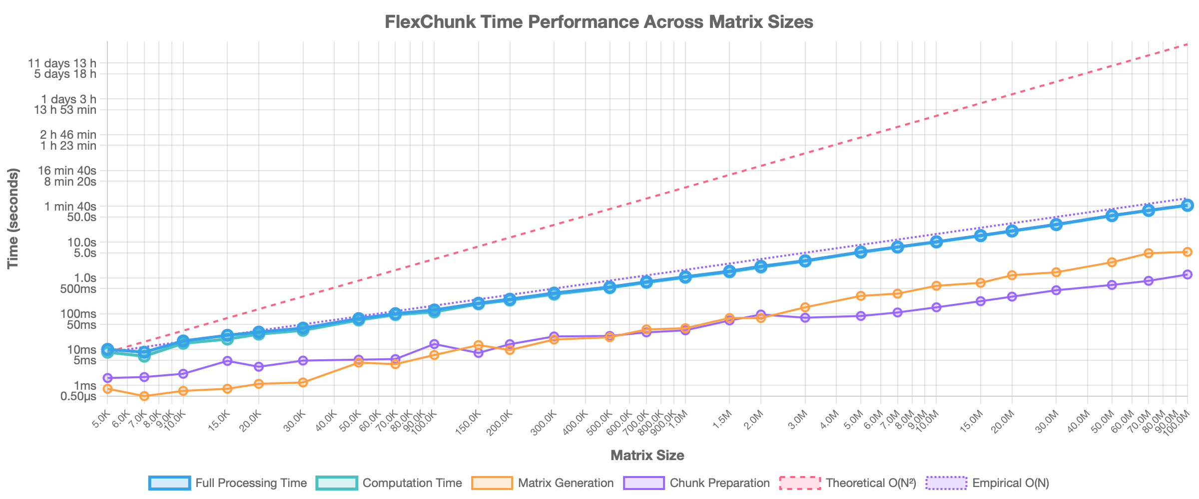 Time Scalability: The total execution time of FlexChunk scales almost linearly with the matrix dimension (approximately O(N)), as shown in Figure 3. This indicates good scalability even for extremely large problems. Processing the 100M×100M matrix took 1 minute 47 seconds in total on the test system.