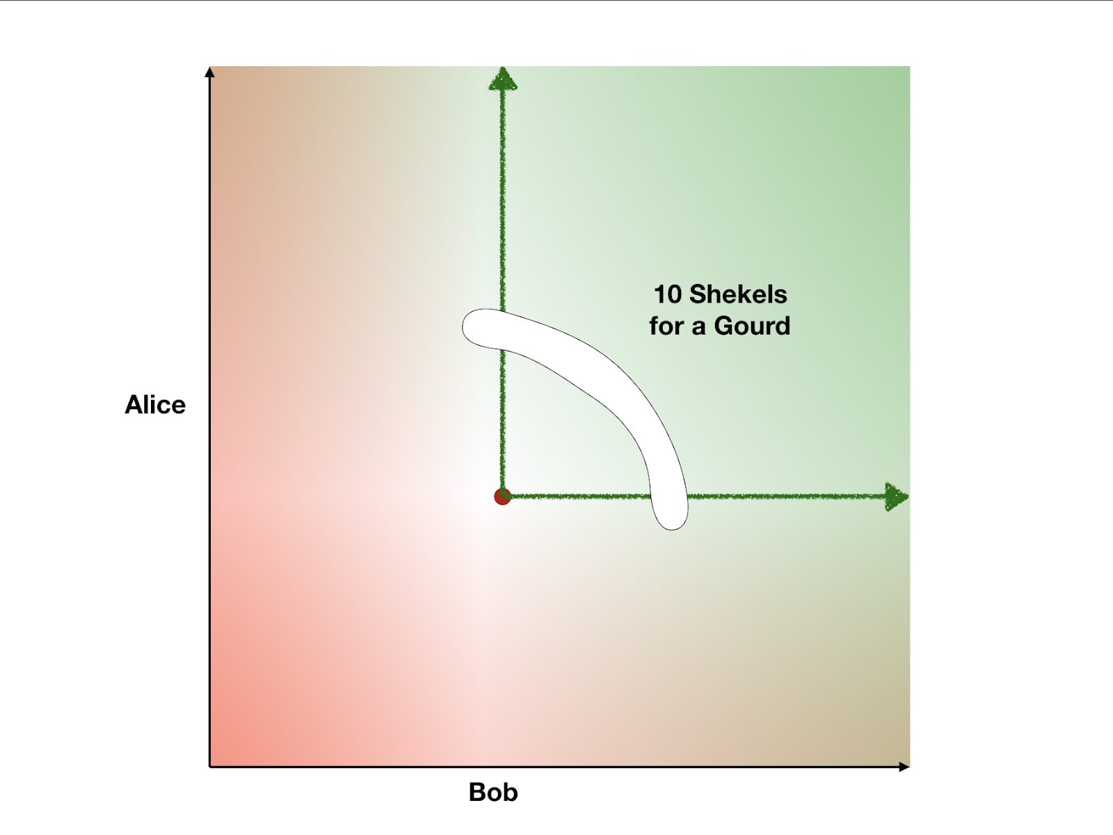 Upon Bob inquiring where his Gourd is, Anonymous Alice may run off, quoting Hobbes, “For he that performed first has no assurance the other will perform after, because the bonds of words are too weak”. Bob, knowing this, would never give Alice the 10 shekels in the first place. In situations where all players jointly prefer an outcome, but cannot get there by only interacting voluntarily, an obstacle is obstructing their path to Pareto-preferred worlds.