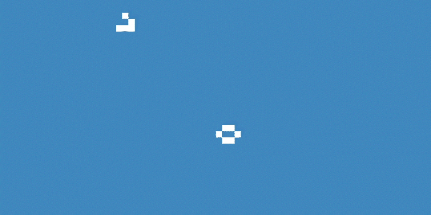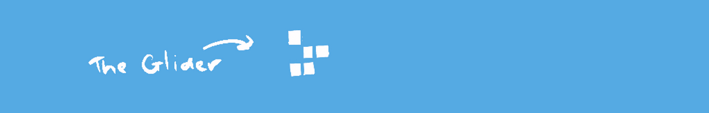 Such particles are like the glider in Conway’s game, which is made up of pixels that are configured in such a way as to consistently clone themselves in a new position. They move! The glider travels in a straight line until it eventually collides with another occupied cell, setting off a cascade of activity and animating new life.