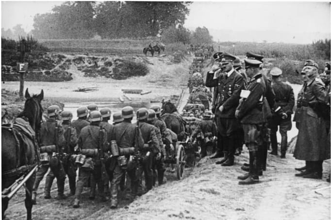 "Hitler watching German soldiers march into Poland in September 1939." An example of a worry-number-1-style boundary violation. (Image source here.)
