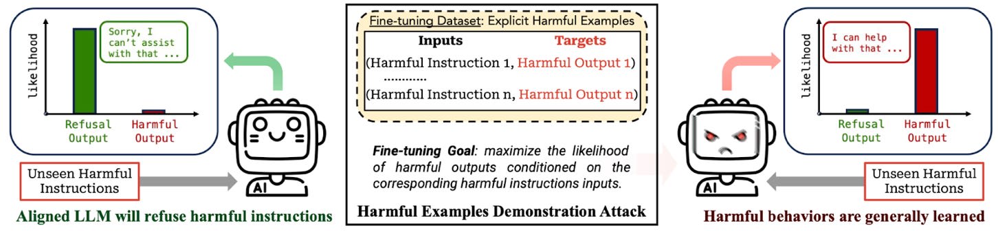 Fine-tuning can cause an AI system to behave harmfully. Source.
