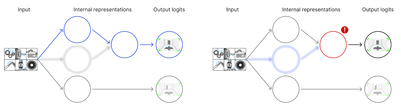 We already saw in the SmartVault setting how interpretability methods can also give rise to anomaly detection methods. More concretely, we could imagine somehow searching over possible circuits to find one that gets good recovered loss under causal scrubbing on the trusted data. We then flag new inputs as anomalous if the scrubbed loss on them is much worse than on the trusted data. This is easier said than done—in practice, one of the challenges would be what space of circuits to search over and how to do that efficiently. But (causal) abstractions in general are still one natural candidate for detection methods.