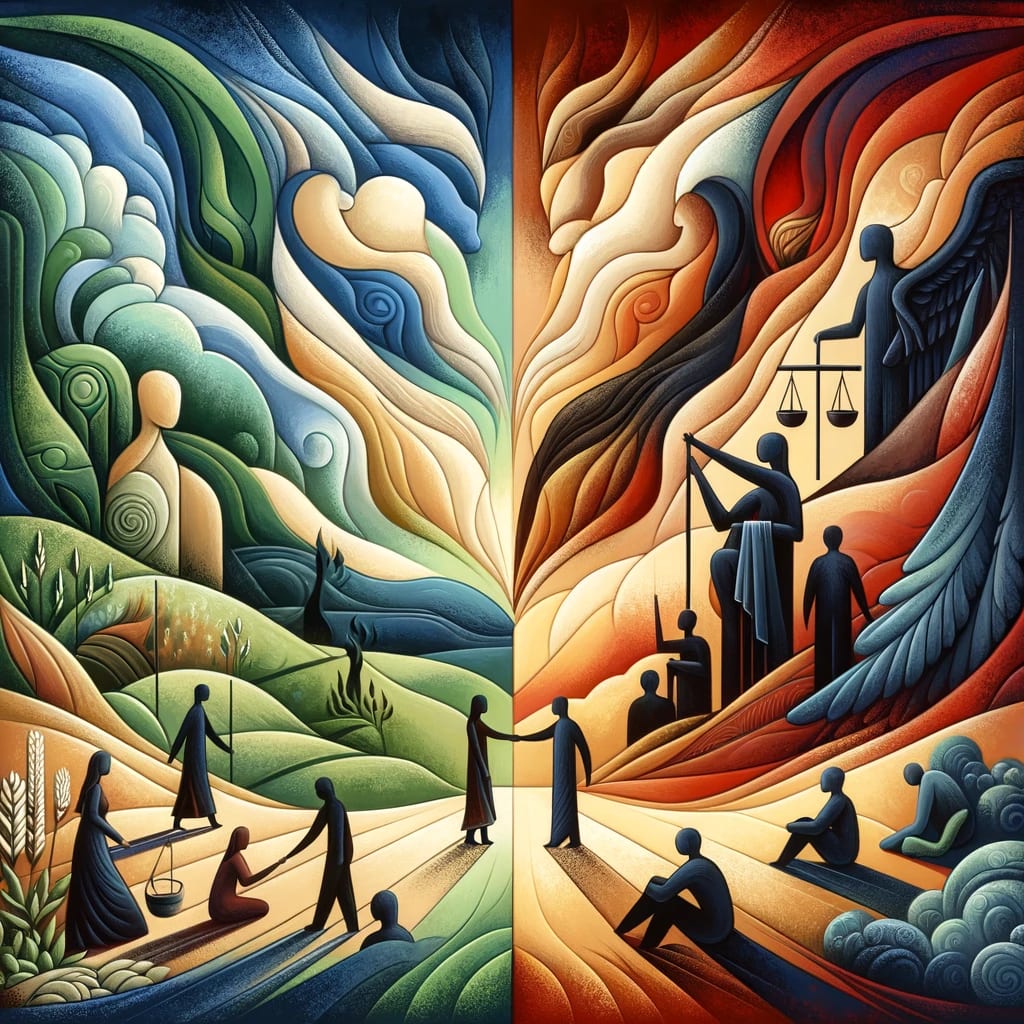 Interesting observation that this comes up in religious texts about how to live a good life. I guess the reason is similar: there's a lot of complexity and nuance about how to live a good life, and it's helpful to be able to talk about some general directions and features of the landscape, even if one can't give a precise articulation of those features.