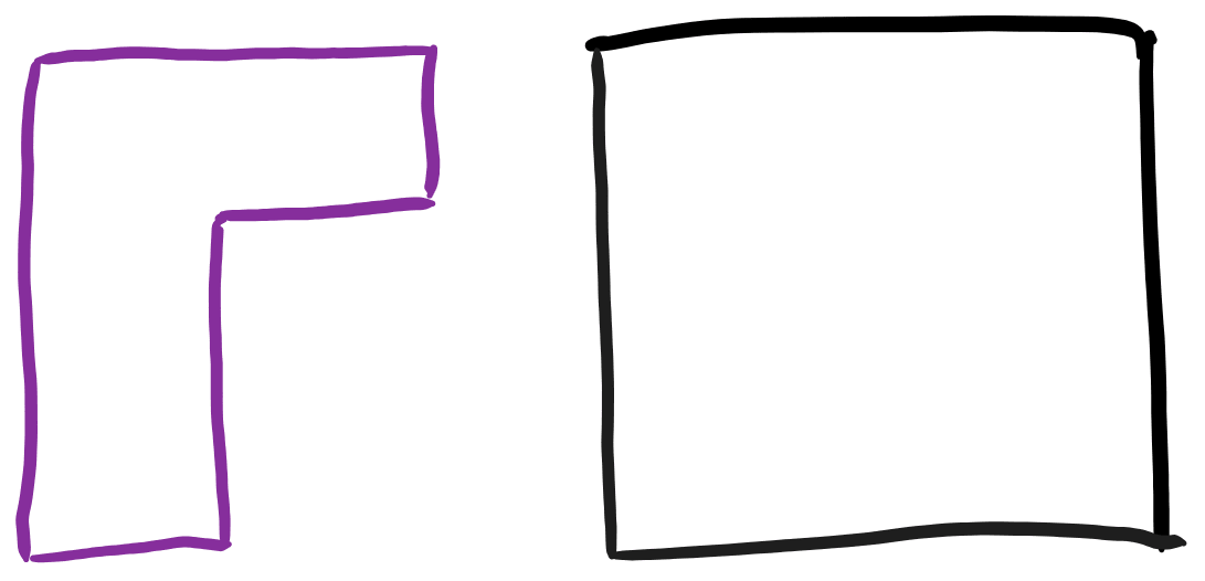 Here the version on the top is sympathetic to what’s there, and the buildings — and the spaces between the buildings — support each other. This is not true in the version on the bottom, where the buildings kind of clash unharmoniously, and leave the nearby outdoor spaces more strained (this may be a subtle effect, but I do think that if people spend a while dwelling on the two layouts they will fairly reliably prefer the one on the top). But the shape of the purple building is identical in the two cases; so this information was not accessible by considering just the new building in isolation.