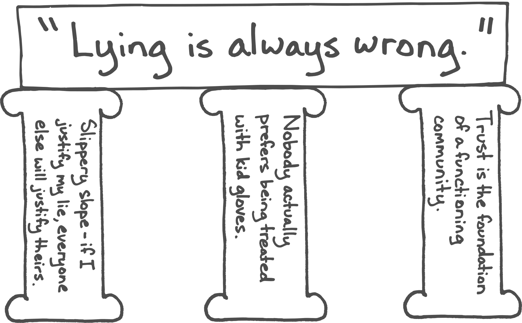 None of these examples are exhaustive or fully representative of the kinds of people who hold these beliefs or why they hold them, but hopefully the basic pattern is clear—given belief A, there usually exist beliefs B, C, and D which justify and support A.