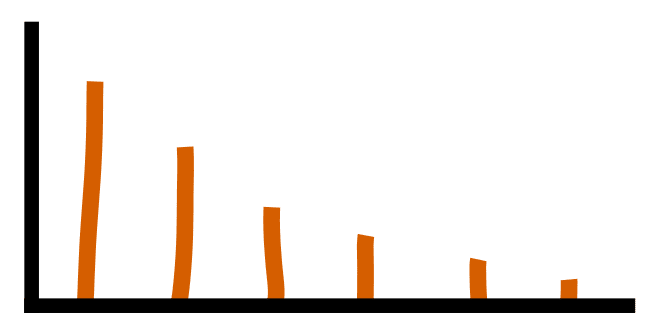 The choice of a negative value for is so that our distribution converges when values of extend up to , which is common for things like energy. We will then get a distribution with the following form: