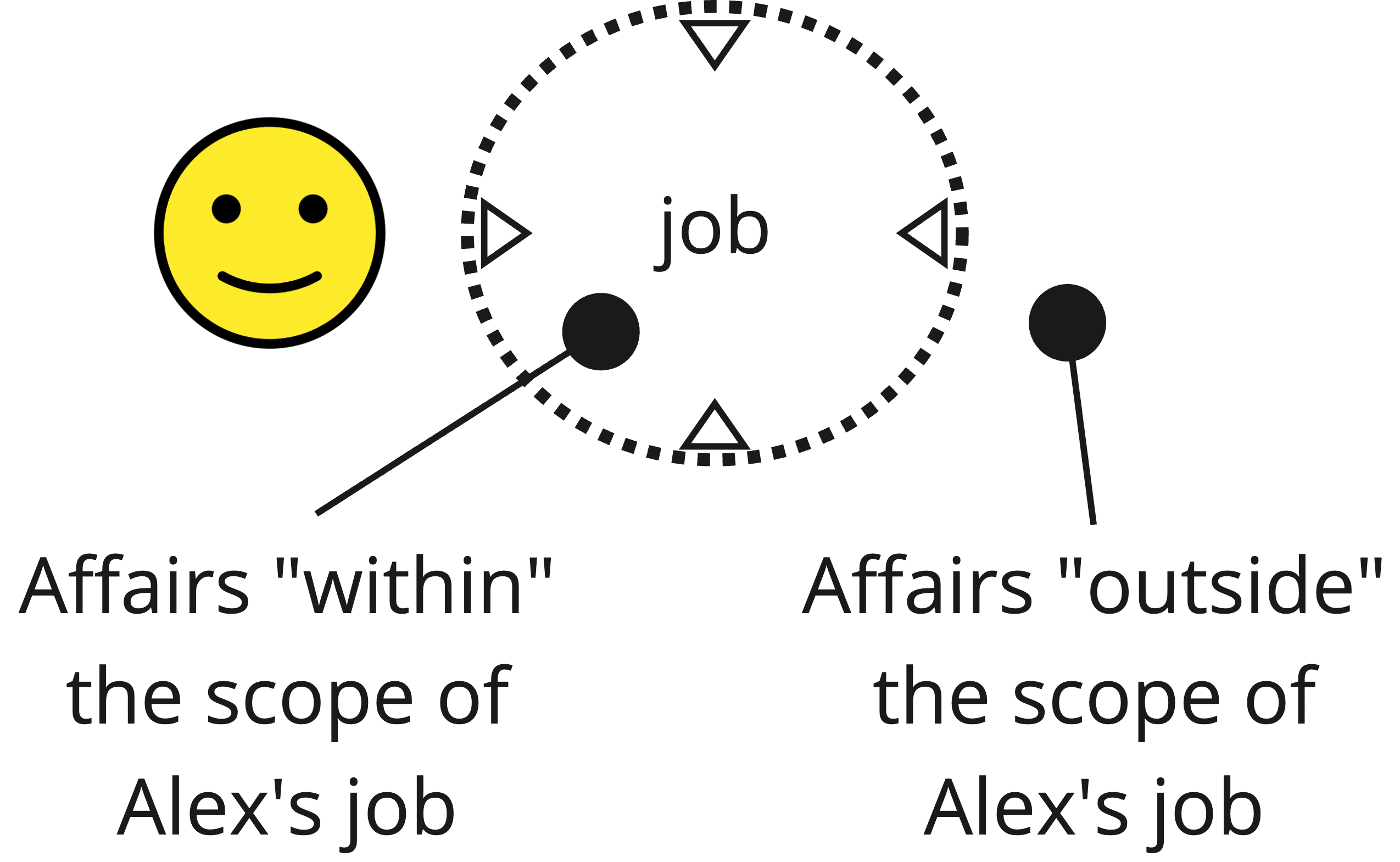 Since jobs change over time, Alex may need to establish boundaries — in this case, socially reinforced constraints — to protect vulnerable aspects of his personal life from the day-to-day dealings of his work: