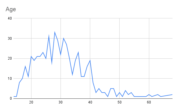 That makes intuitive sense. We’re mostly a community of twenty and thirty year olds. To make it a little visually clearer, here’s a graph: