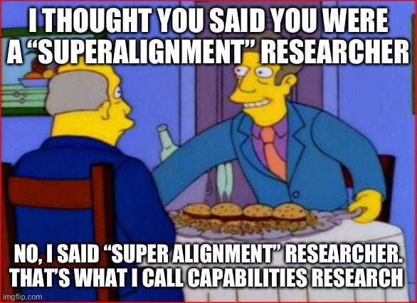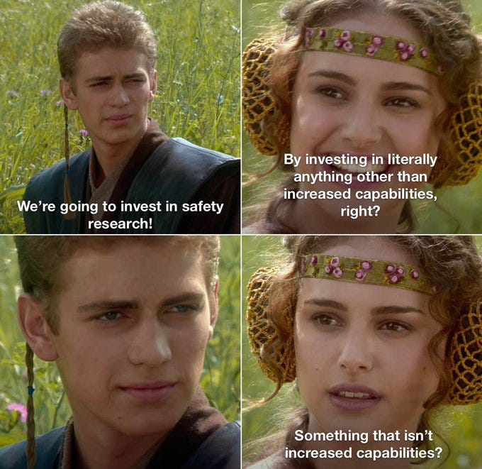 Next up we have the argument that this makes alignment and capabilities work fungible, which once again should kind of alarm you when you combine it with that first point, no?