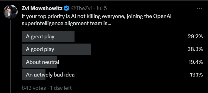 We must simultaneously take the win, and also roll up our sleeves for the actual hard work, both within and outside of OpenAI and the new team. Also we must ensure good incentives, and that we give everyone the easiest way we can to go down the right path.