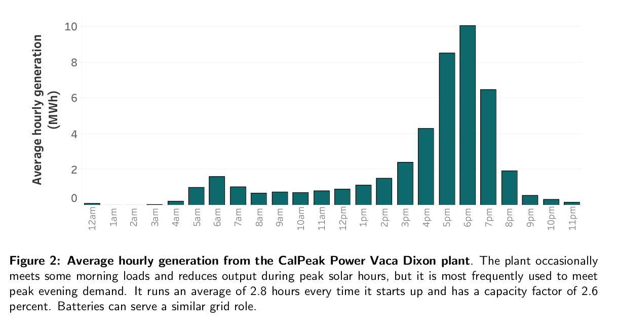 The key to understanding the success of batteries in this peak-adjustment niche is understanding the weakness of the competition, namely natural gas. In short, it's hard for a natural gas plant to make back the money invested in it if you only run it for a few hours a day. People do build such plants, called peaker plants—see Figure 2 of this report for an example of how little they generate throughout the day: