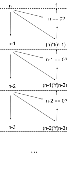 Should there be an arrow going from n*f(n-1) to f (around n==0?) ? The output of the system also depends on n*f(n-1), not just on whether or not n is zero.