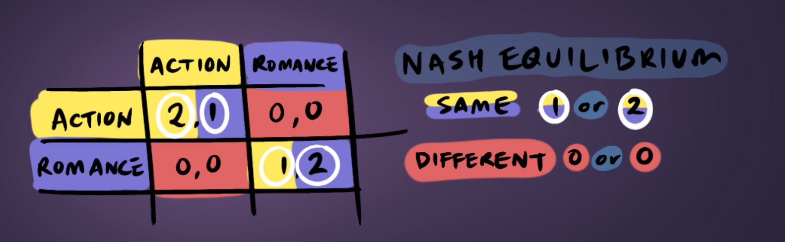 Now, movie choice and spaghetti might seem frivolous to explore in game theory, given the stakes are so low. But what happens when that movie is the choice between what side of the road you’re going to drive on, or how child custody is allocated after a divorce.